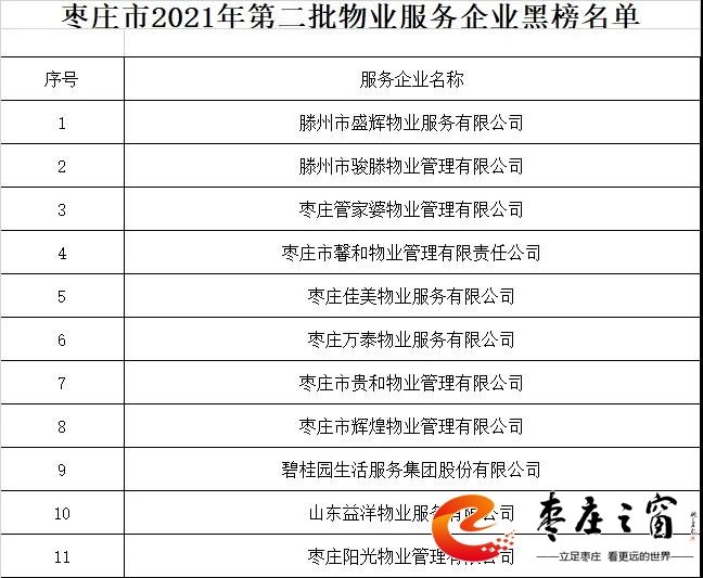 棗莊發(fā)布2021年第二批物業(yè)公司紅黑榜